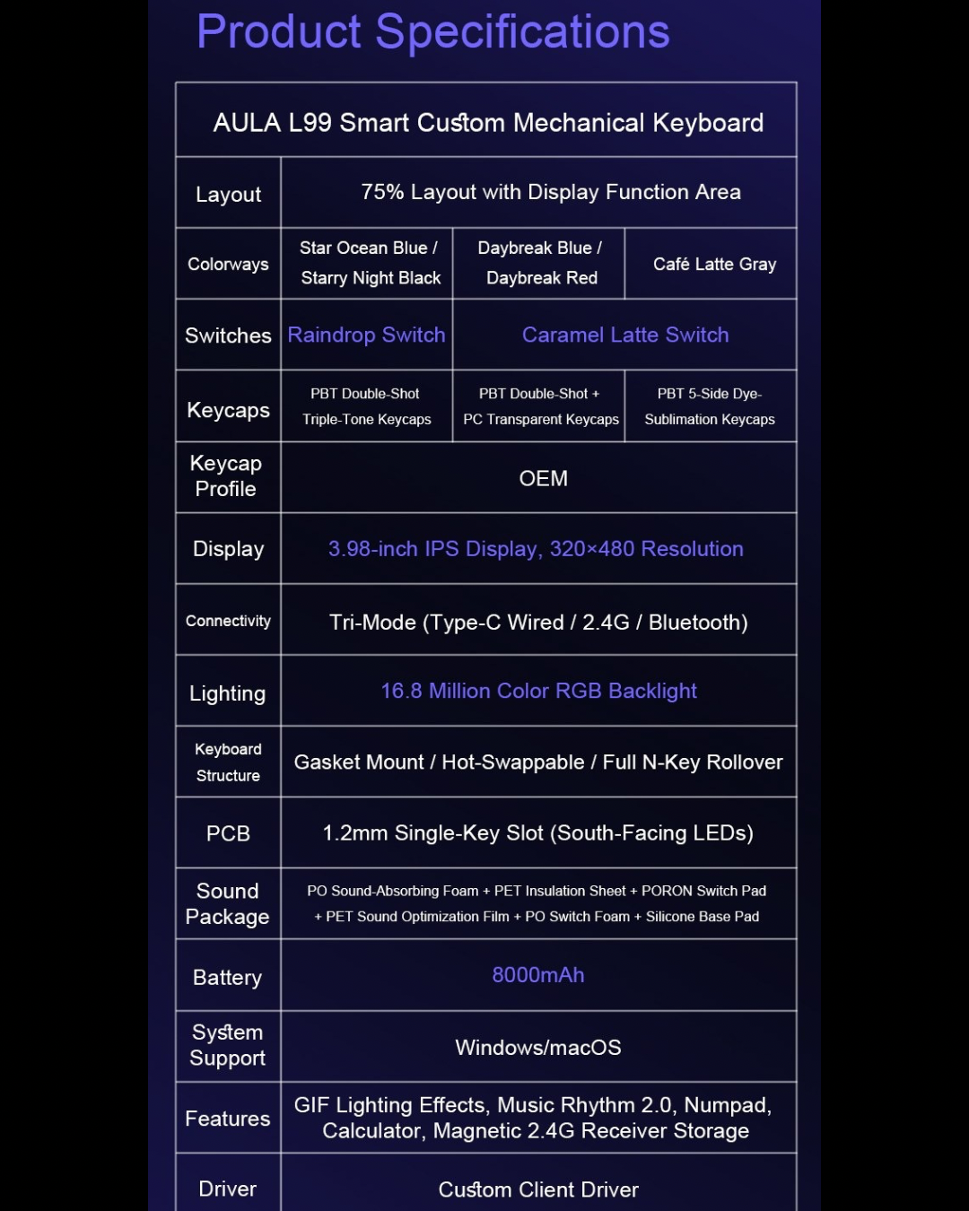 • Triple Mode Connectivity: Type-C wired/2.4G wireless/Bluetooth - 8000mAh Battery