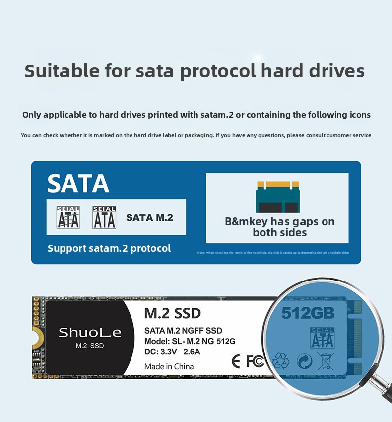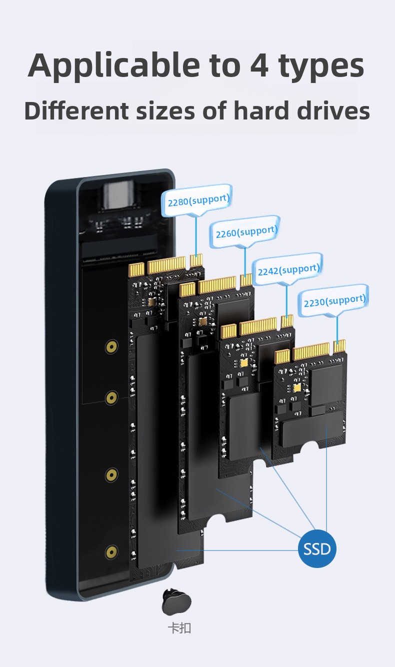 Universal Compatibility: Works with M.2 SATA protocol SSDs up to 4TB capacity.