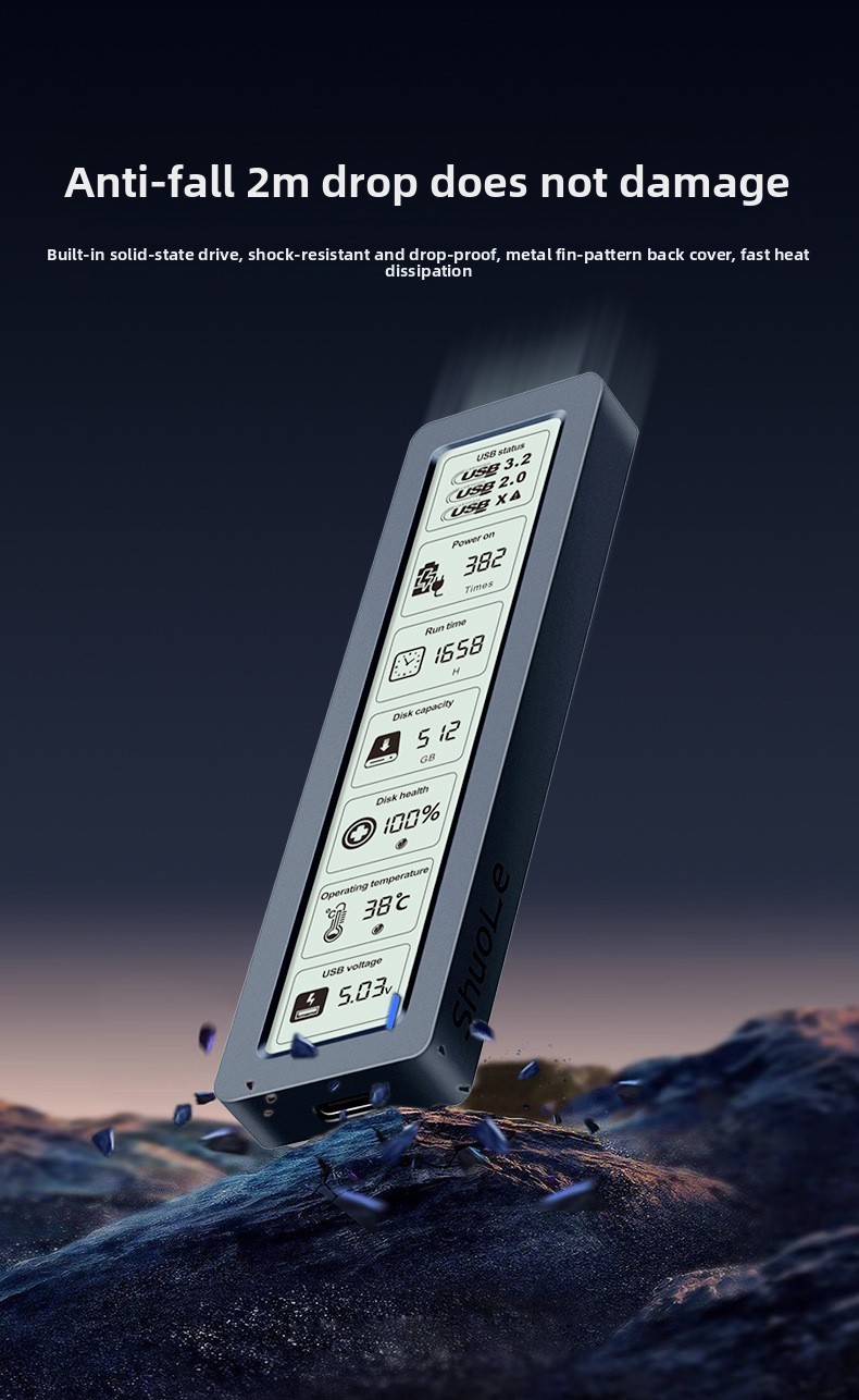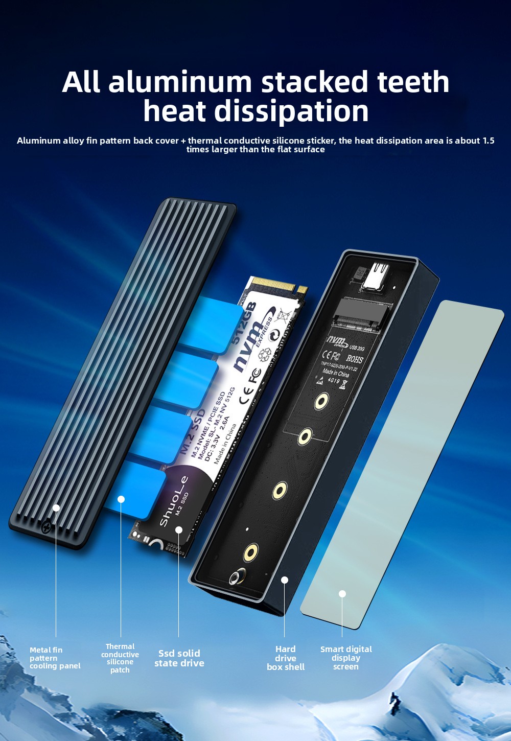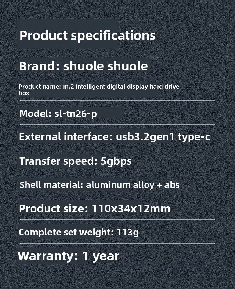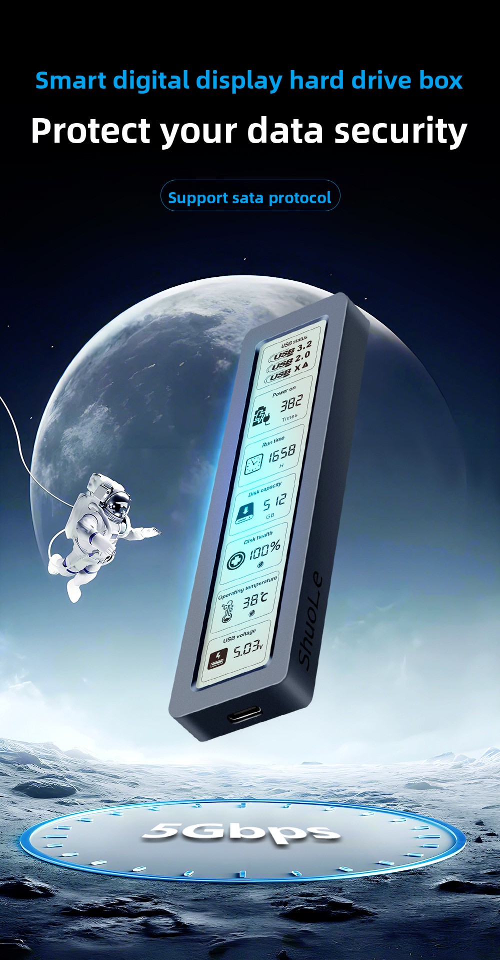 Hard Drive Box, M.2 Smart Screen Display SSD Enclosure USB, Smart Screen Display: Features a built-in screen to monitor real-time data transfer status, Universal Compatibility, Durable Build