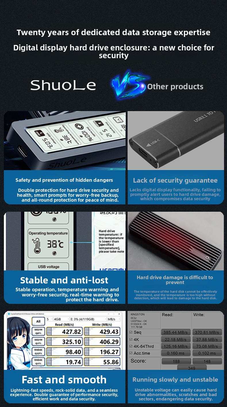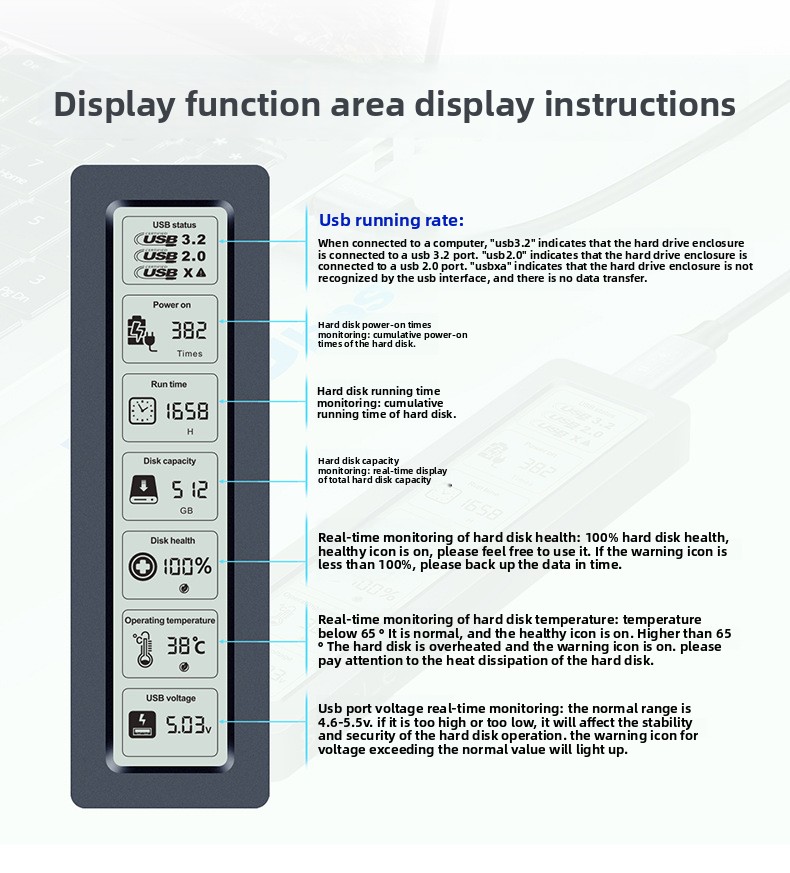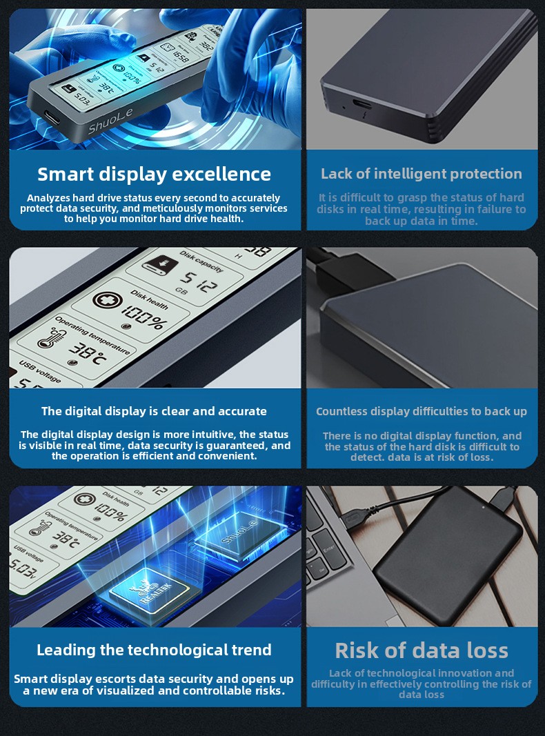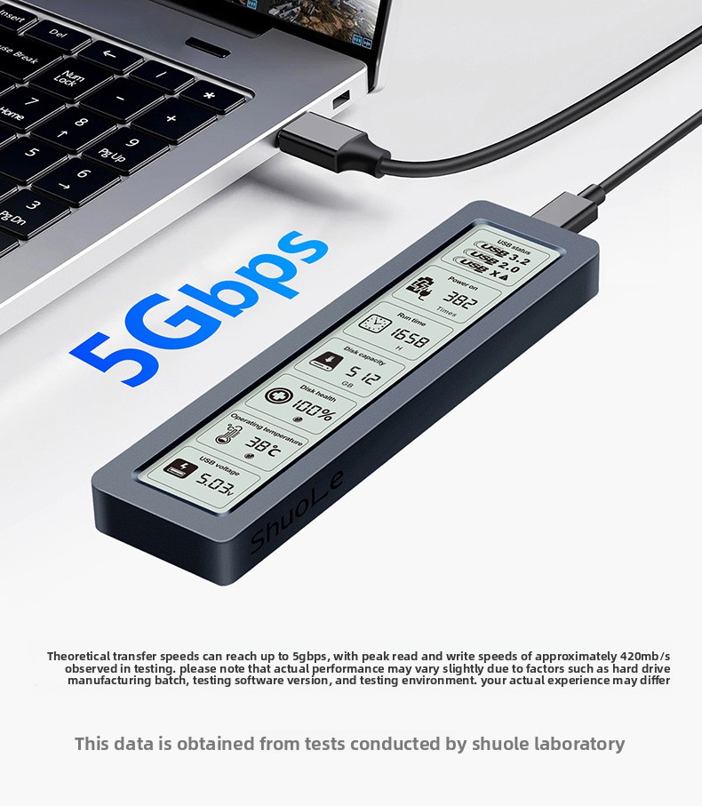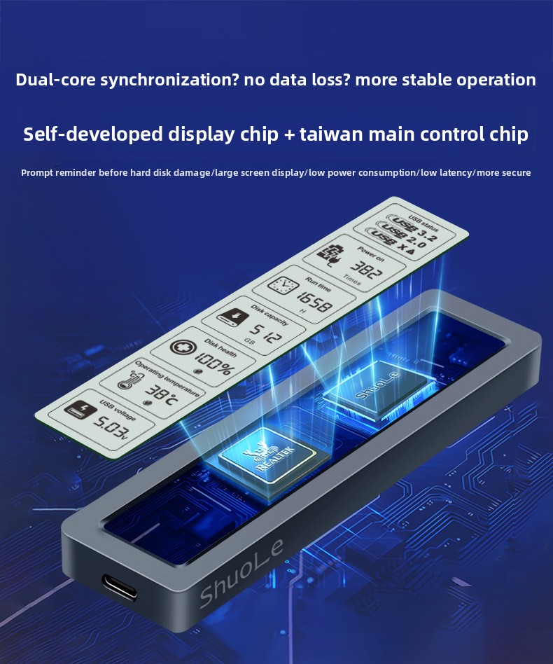 Hard Drive Box, M.2 Smart Screen Display SSD Enclosure USB, Smart Screen Display: Features a built-in screen to monitor real-time data transfer status, Universal Compatibility, Durable Build