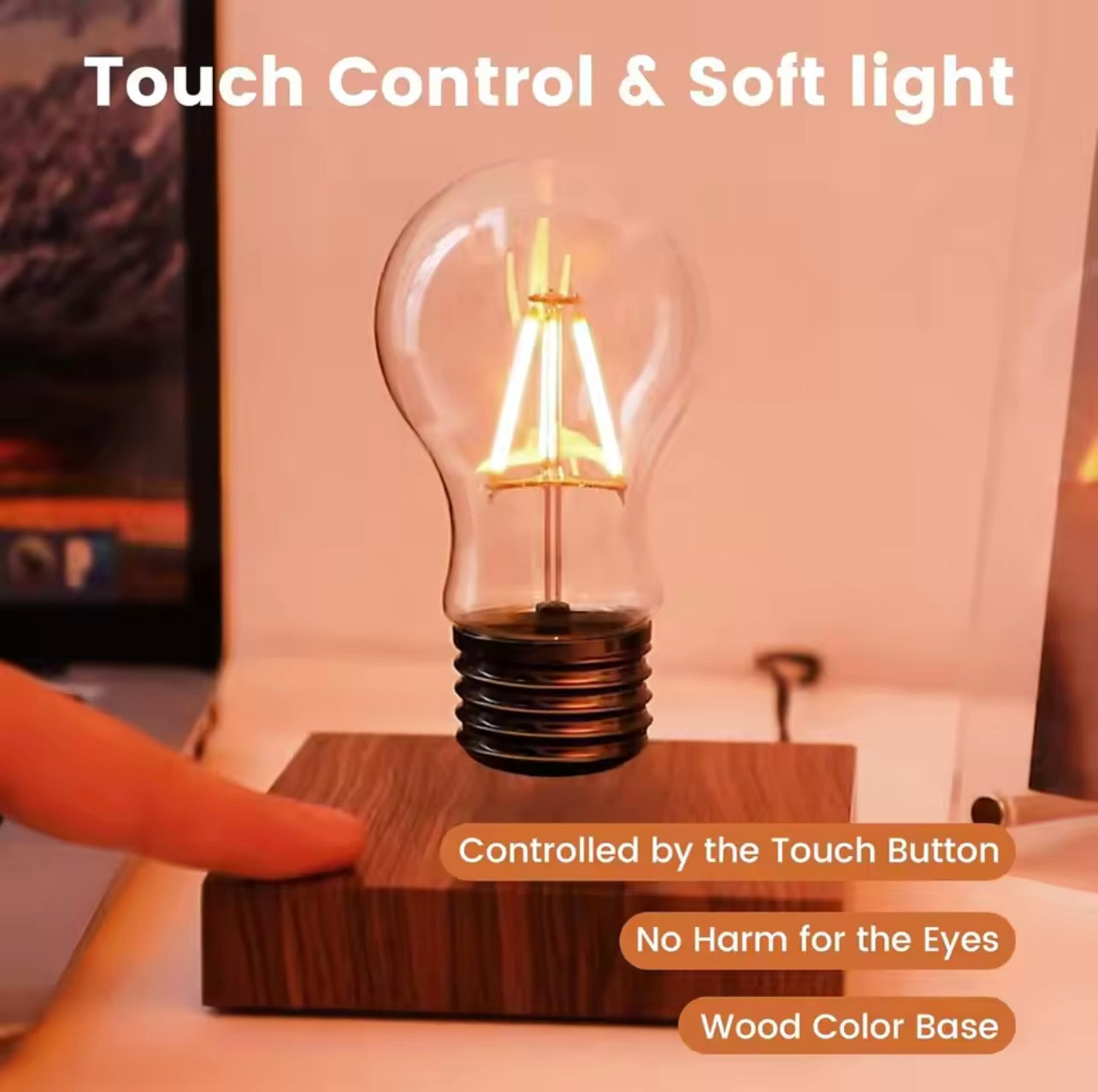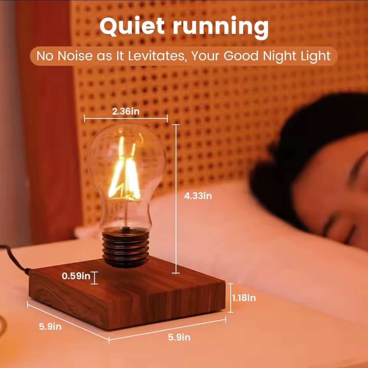 Bring futuristic design and cozy ambiance to your space with this Levitating Floating Light Bulb Lamp. Featuring patented magnetic levitation technology, the bulb magically floats and rotates in mid-air above its sleek magnetic base. Simply power it on, and in one second, the bulb levitates and illuminates your room with warm, eye-friendly LED light – no batteries required.