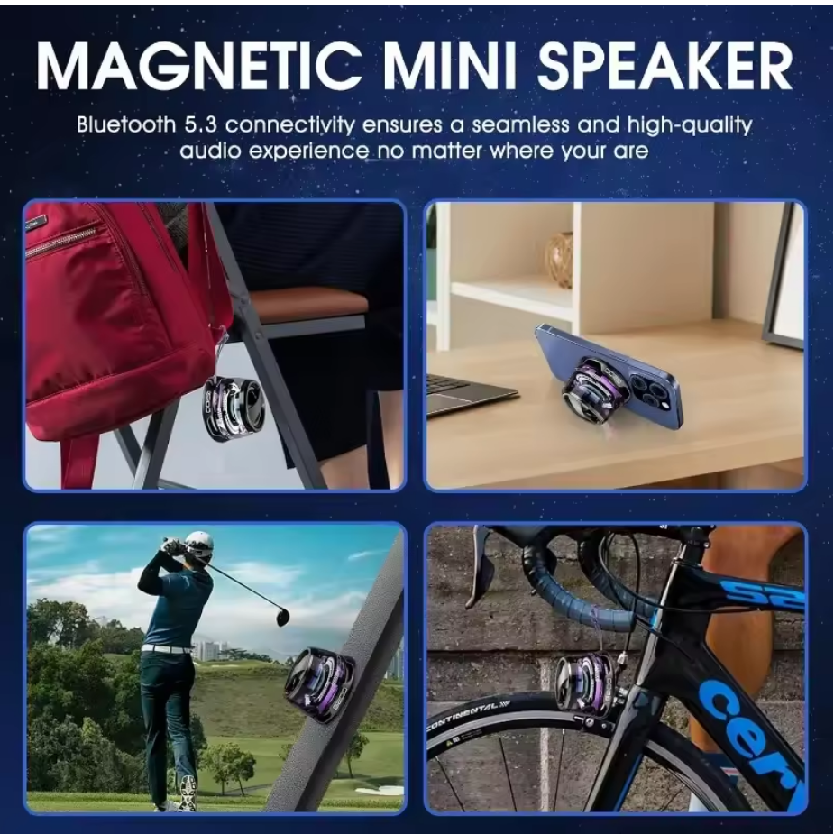 Our small Bluetooth wireless speaker comes with 9 built-in magnets, allowing it to attach securely to any metal surface like refrigerators or metal doors. Plus, with the included metal ring, you can mount it anywhere—on cabinets, doors, or any flat surface—making it a perfect portable music solution for your home, office, or outdoors.