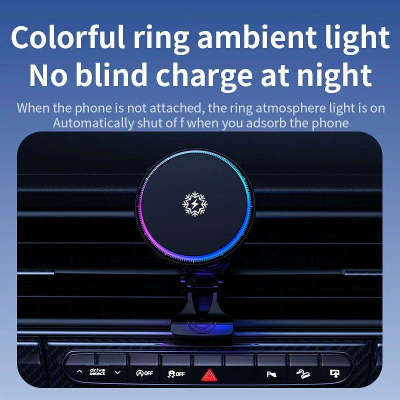 Upgrade your driving experience with this all-in-one MagSafe car vent mount. It’s not just a charger—it keeps your phone cool, charges it wirelessly at lightning speed, and adds a colorful RGB atmosphere to your car interior.