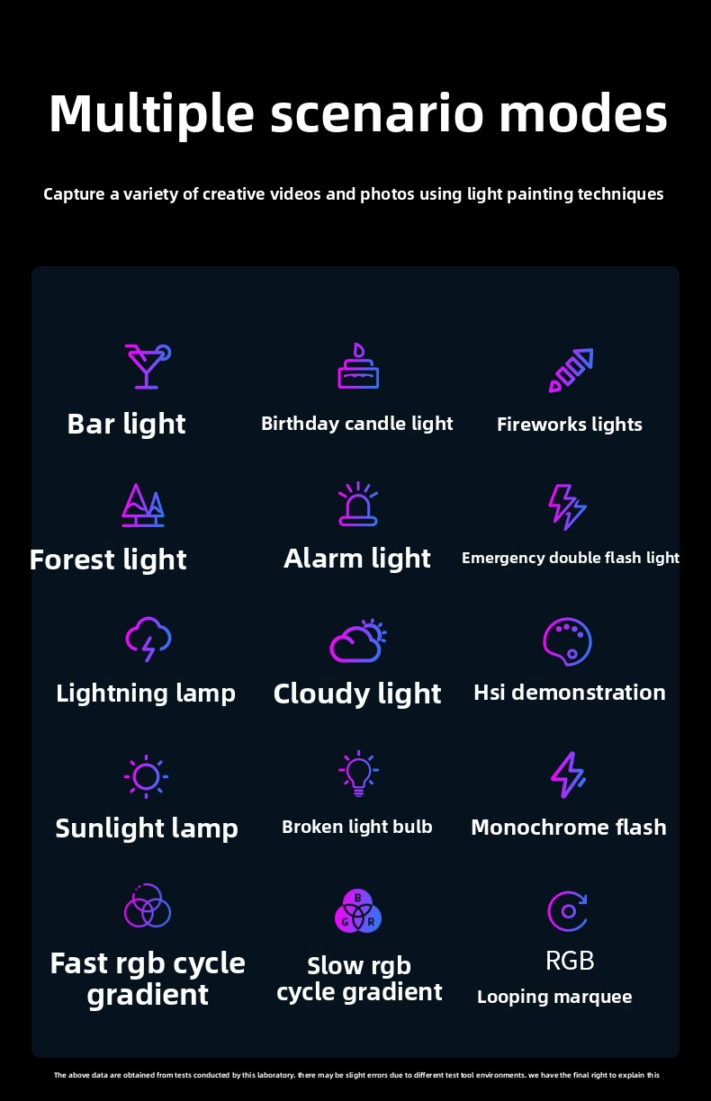 Light Modes: White light standard, Tri-color flagship, RGB full color versions