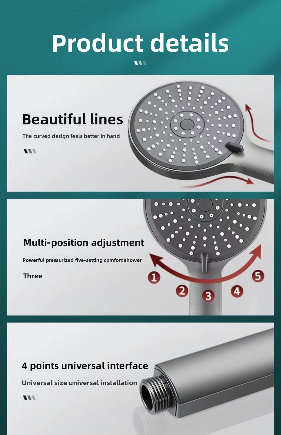 Spray Modes: 5 (rain, massage, spray, etc.)