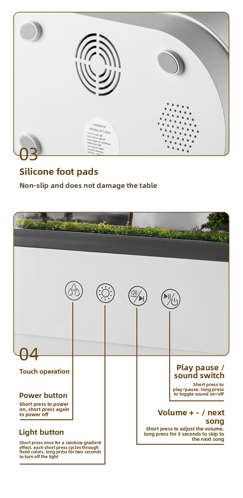 Functions: Humidification, Aromatherapy, Timing, Sleep Aid, Ultrasonic, Lighting