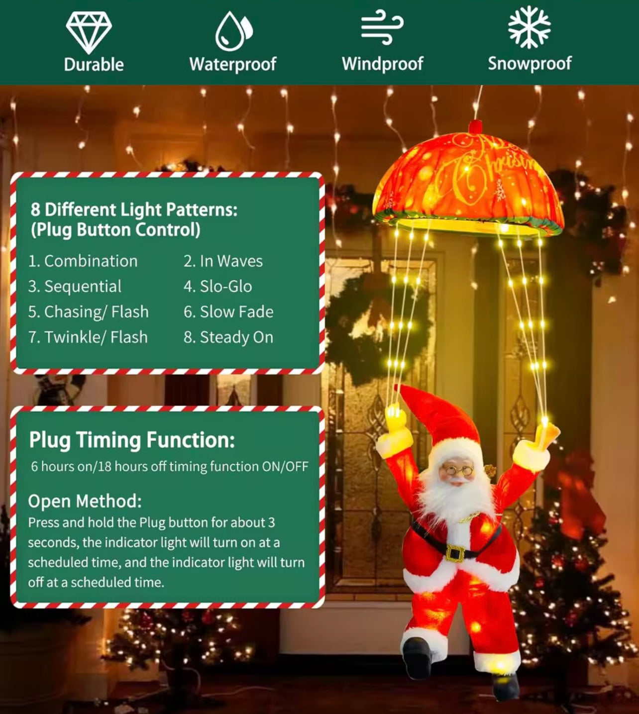 (Cute Santa Claus Lights) - With unique colorful santa claus parachute shaped design, those lovely and beautiful decor lights can create a warm feeling and festive atmosphere in this Christmas holiday.