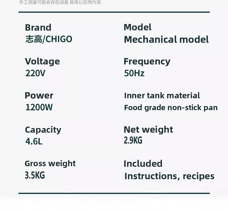 Color Options: 4L Camel (Single Knob), 6L Camel (Double Knob), 6L Camel (Double Knob/Visual), 5L Chigo (Double Knob/White or Green), 6L Chigo (Mechanical Visual or LCD Touch Screen)