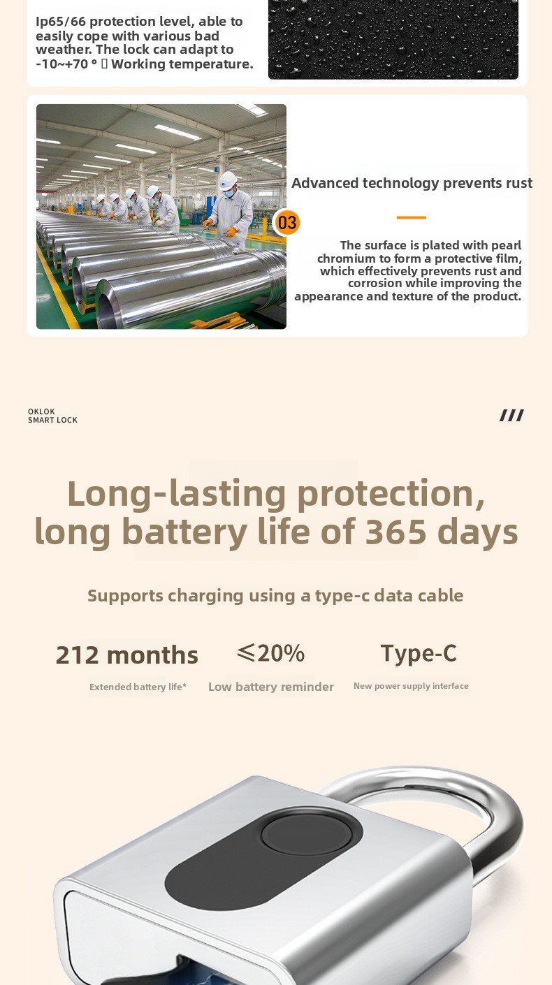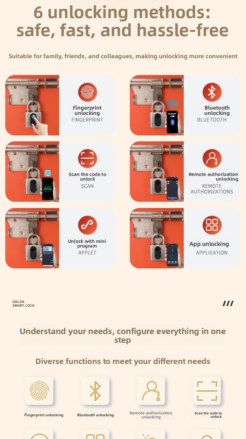 Smart Fingerprint Access: Supports up to 60 fingerprint entries for quick and secure unlocking.