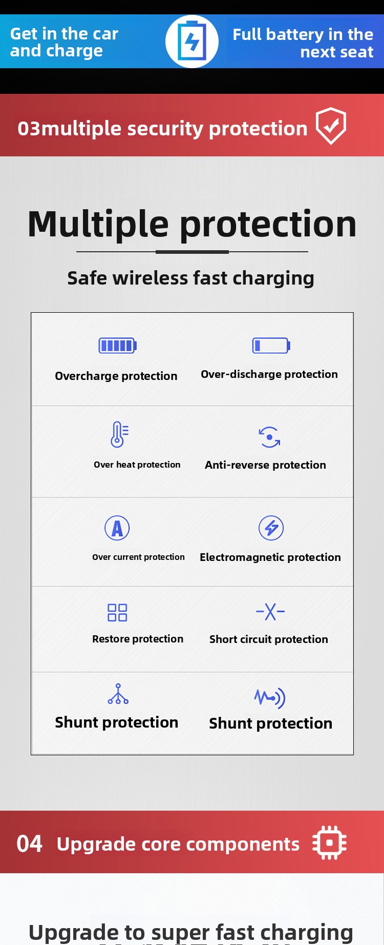 Fast Wireless Charging: Supports QC2.0 protocol for efficient charging up to 10W.