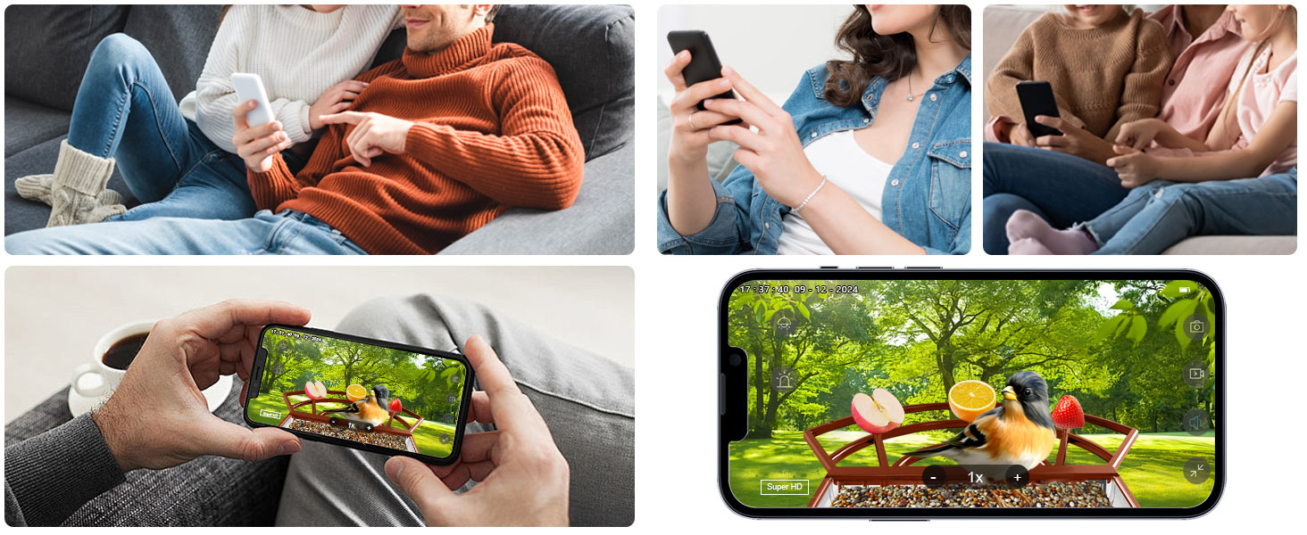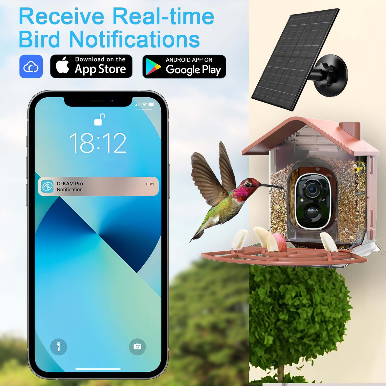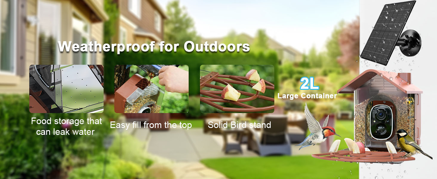 Camera Included: Built-in camera for real-time monitoring and bird watching.