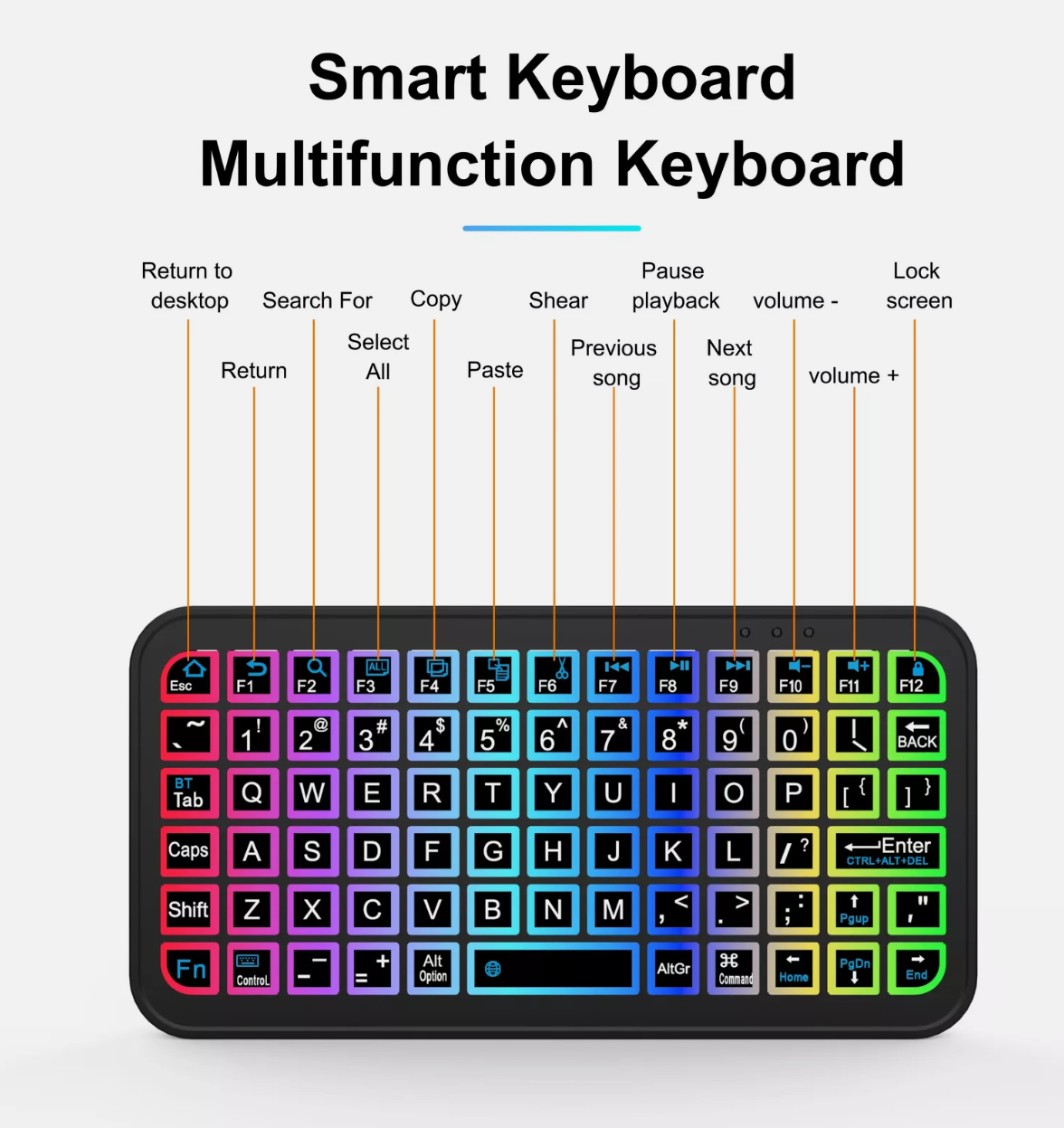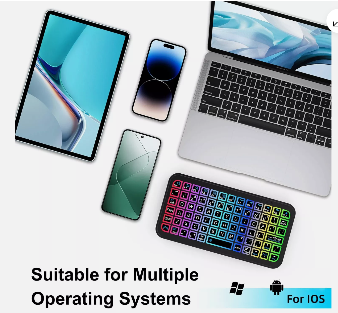 WIRELESS KEYBOARD MOUSE COLORFUL LUMINOUS ADJUSTABLE BACKLIGHT TABLET PHONE PC